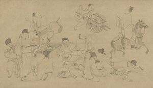 الخالدون الثمانية لقدح النبيذ كما صوّرهم رسام أسرة مينج دو جين