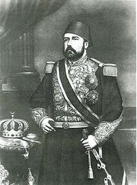 خديوي مصر والسودان السابق، إسماعيل باشا، يغادر قصر عابدين في القاهرة بعد أن أجبره الدائنون على النزول عن العرش في 1879. اللوحة بريشة أنطونيو بونامورا، من اسكتش رسمه بونولا، نقشه كانـِدي، بمجلة L'Illustrazione Italiana, 6 (30)، 27 يوليو 1879.