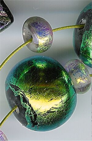 - تقنية الزجاج المزدوج اللون ويتم صناعة هذه الخرز بمزج طبقة رقيقة شبه شفافة من المعادن بين طبقتين أو أكثر من الزجاج.
