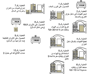 الخطوات العشر المتبعة لتعيين نسبة المسامية وفقاً لأسلوب التفريغ والضغط موضحة في شكل ءءء ، وهى: