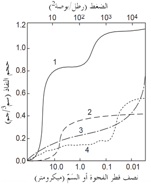 كنها أكثر فائدة لقياسات مراقبة الجودة لتحديد مدى توافق عملية التصنيع مع مواصفات المواد الحرارية. يُعَيَّن حجم وكمية المسام في المادة الجامدة من خلال قياس كمية الزئبق الذى يمكن أن يُدفع إلى داخل مسام المادة قيد الدراسة عند ضغوط مختلفة. ولأن الزئبق عادة لا يُبَلِّل المواد، فلن يخترق الزئبق الفتحات بين حشود الجسيمات ما لم يتم التأثير بقوة خارجية. ومن ثم فإن مدى اختراق الزئبق إلى داخل المسام يتم وفق علاقة صارمة مع الضغوط المؤثرة.