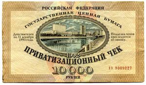 - ^ Appel, Hilary (December 1997). "Voucher Privatisation in Russia: Structural Consequences and Mass Response in the Second Period of Reform". Europe-Asia Studies. 49 (8): 1433–1449. doi:10.1080/09668139708412508.