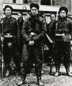 From contemporary Western observers, German, Russian, and Japanese troops received the greatest criticism for their ruthlessness and willingness to wantonly execute Chinese of all ages and backgrounds, sometimes by burning and killing entire village populations.[41] The Americans and British paid General Yuan Shikai and his army (the Right Division) to help the Eight Nation Alliance suppress the Boxers. Yuan's forces killed tens of thousands of people in their anti-Boxer campaign in Zhili Province and Shandong after the Alliance captured Beijing.[42] The British journalist George Lynch said that "there are things that I must not write, and that may not be printed in England, which would seem to show that this Western civilization of ours is merely a veneer over savagery".[35]