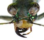 أعلى اليسار إلى أسفل اليمين: أنثى golden stag beetle (Lamprima aurata), rhinoceros beetle (Megasoma sp.)، وهو نوع من Amblytelus, cowboy beetle (Chondropyga dorsalis)، و a long nose weevil (Rhinotia hemistictus). | |