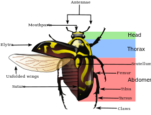 ومثل الكثير من الحشرات، جسمها، مقسم لثلاثة أقسام، القسم الامامي (prothorax)، قابل للحركة.