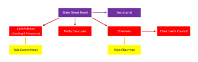 The Chairman's Council consists of the vice-chairman of the State Great Khural, Chairmen of the caucuses, leaders of parliamentary parties, and Chairmen of standing/temporary committees.