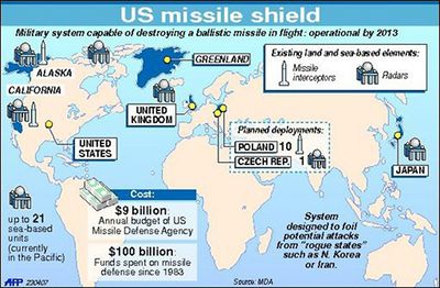 خريطة تبين مشروع الدرع الصاروخي الأمريكي