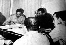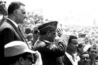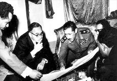 العقيد عبد المنعم خليل ينظر في أوراقه وبجواره المشير عامر.