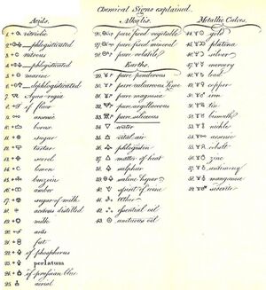 Alchemical symbols, originally devised as part of alchemy, were used to denote some elements and some compounds until the 18th century. Although notation was partly standardized, style and symbol varied between alchemists. Lüdy-Tenger[1] published an inventory of 3,695 symbols and variants, and that was not exhaustive, omitting for example many of the symbols used by Isaac Newton. This page therefore lists only the most common symbols.