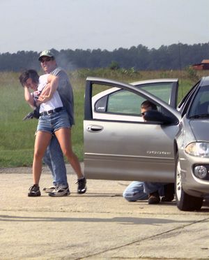 يتدرب أفراد الشرطة على تخليص الرهائن المحتجزين بالقوة.