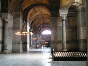 وطول تلك الاروقة 760 مترا وهي تقي من الشمس والمطر ، وتستخدم للصلاة أحيانا، وحوائطها من السيراميك الجميل.