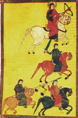 الفرسان الأربع، في مخطوطة ملونة في كاتدرائية طليطلة، من عام 1086