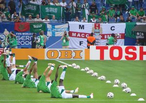 لاعبو المنتخب السعودي أثناء التمرين قبل مباراتها الثانية مع أوكرانيا في نهائيات كأس العالم 2006 بألمانيا