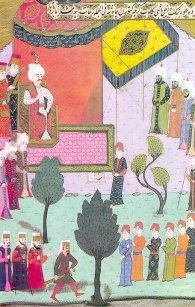 رسم للسلطان سليم على تخت السلطنة من قصر الباب العالي.