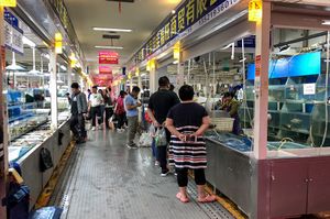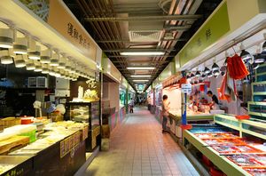 wet market n. South-East Asian a market for the sale of fresh meat, fish, and produce