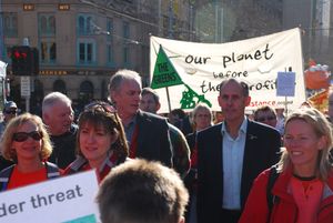 Bob Brown at a climate change rally in Melbourne, 5 July 2008