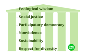 يشترك الداعمون للسياسة الخضراء في كثير من أفكارهم مع حركات علم البيئة والحفاظ ومذهب البيئية والنسوية وحركة السلام. وفضلاً عن تركيزها على الديمقراطية والقضايا البيئية تعنى سياسة الخضر بالحريات المدنية والعدالة الاجتماعية واللاعنف وأحياناً مختلف أنواع القضايا المحلية،[8] وتميل لتأييد التقدمية الاجتماعية. عموماً تعتبر منصات أحزاب الخضر يسارية من ناحية موقعها على الطيف السياسي.