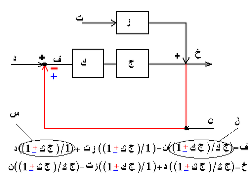 أي أن تكون الدالتان صفرا ولكننا لا نريد لدالة تحويل المدخل للمخرج أن تكون صفرا. لقائل أن يقول لماذا لا نتحكم في المدخل حتى يكون ضاربه في ج ك/ ج ك + 1 يساوي عكس الباقي. لا تنسى أن الهدف من التحكم هو أن يتغير المخرج طبقا لما نريده لا أن نحاول إيجاد مدخل يكون الفرق فيه صفرا. المشكل الثاني هو أنك لا تستطيع تغيير س بدون تغيير ل و ذلك لإن س + ل يساوي 1 و يمكن التأكد من ذلك بعملية حسابية بسيطة.