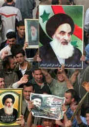 آية الله العظمى السيد علي الحسيني السيستاني (1930-..) المرجع الديني الأعلى للشيعة في العراق وأحد أبرز المرجعيات الدينية لدى الشيعة في العالم الإسلامي على العموم. يعيش حياة بسيطة في مدينة النجف ، خلف آية الله السيد أبو القاسم الخوئي في زعامة حوزة النجف الأشرف وهي من أهم المراكز في العالم للدراسات الدينية لدى الشيعة الإثنا عشرية الأصولية