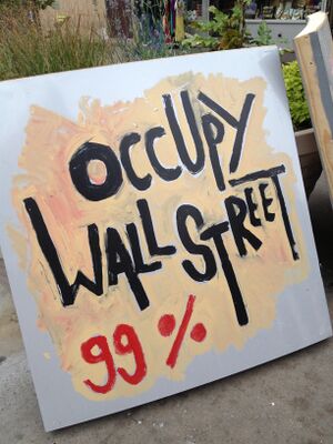 An Occupy Wall Street sign with the 99% slogan, a left-wing populist movement.