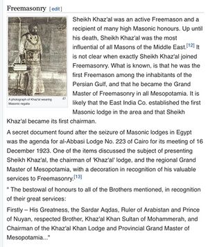 - ^ Allday, Louis (7 November 2017). "The Shaikh who lost his Shaikhdom, Khaz'al al-Ka'bī of Mohammerah".