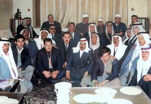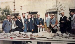 الشيخ علي حسون اغا في جامع اليقظة الاسلامية اثناء افتتاحه ويظهر شقيقه محسن حسون اغا ومجموعة كبيرة من اهالي الموصل
