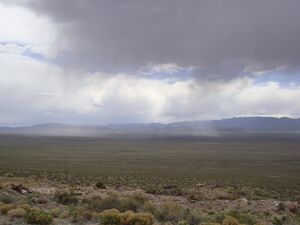 وعلى هذا يمكن القول بأن المناطق الصحراوية ليست خالية تماماً من الأمطار - كما قد يتصور البعض - إلا إذا إستثنينا بعض أجزاء من الصحراء الليبية, ومن صحراء أتاكاما بأمريكا الجنوبية. فقد بلغ متوسط المطر السنوي في مدينة إيكيكي بشيلي (في صحراء أتاكاما) على مدى 35 عاماً نحو 0.05% من البوصة. كما أن مدينة كالاما التي تقع في منطقة واحدة من منطقة أكثر قحولة في صحراء أتاكاما, قد مرت عليها فترة 13 سنة دونأن تقع عليها نقطة واحدة من مياه الأمطار. ولكن المهم أن القانون السائد في المناطق الصحراوية هو أ، سقوط الأمطار فيها يتميز بالفجائية وعدم الإنتظام.
