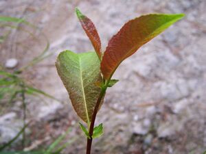 The leaves are simple, feather-veined, and typically linear-lanceolate. Usually they are serrate, rounded at base, acute or acuminate. The leaf petioles are short, the stipules often very conspicuous, resembling tiny, round leaves, and sometimes remaining for half the summer. On some species, however, they are small, inconspicuous, and caducous (soon falling).