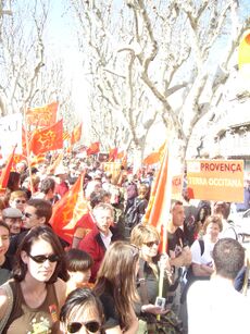 A yellow Occitan cross on a blood-red background with the seven-armed golden star of the Felibritge makes up the flag of modern-day Occitania. It can also be found in the emblems of Midi-Pyrénées, Languedoc-Roussillon and Hautes-Alpes, among many others, as well as in cemeteries and at country crossroads.
