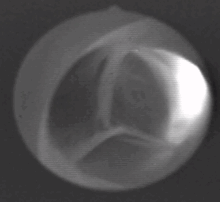 الصمام الأبهري (لحيوان) بجيوبه الثلاث أثناء العمل.