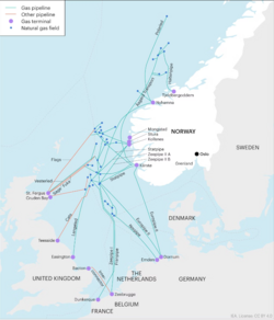 • الشركة المملوكة للدولة جاسكو هي مشغل أنظمة أنابيب الغاز التي تصدر الغاز النرويجي إلى أوروبا.