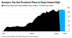 سوف تحتاج النرويج إلى استثمار حوالي 30 مليار دولار في حقول بحرية جديدة، للحفاظ على زيادة الإنتاج البالغة نسبتها 8% في عام 2022 والحفاظ عليها عند مستويات عالية في المستقبل القريب، مع وجود خطط لتصدير الغاز إلى هذه الأسعار الضخمة،