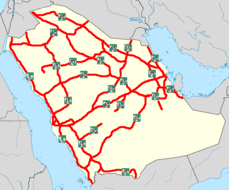 The length of the route from Al-Qasim to Medina is 450 كيلومتر (280 ميل), and the length from the latter to Yanbu is 164 كيلومتر (102 ميل). On the other hand, the distance from Yanbu to Rabigh and Thuwal is 198 كيلومتر (123 ميل).[1]