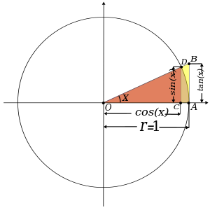 اذا نظرنا إلى صورة (1)، نرى ان المثلثات oab و OCD مماثلة، لذلك لذي ينطوي على العلاقة الاساسية بين الظل، الجيب وجيب التمام :