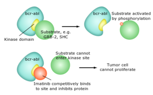 - الإيماتينيب (گليڤيك ويعرف أيضاً باسم STI–571) تم الموافقة عليه كعلاج لابيضاض المحببات المزمن، السرطان الغدي المعدي المعوي وبعض الأنواع الأخرى من السرطان. أظهرت التجارب السريرية المبكرة أن الإمياتينيب قد يؤثر في علاج الساركومة الليفية الجلدية الحدبية.