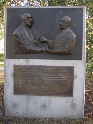 الذكرى 50 للتصالح، 8 يوليو 2012: أنگلا مركل (يسار)، المستشارة الفدرالية لألمانيا، وفرانسوا اولاند (يمين)، رئيس الجمهورية الفرنسية.