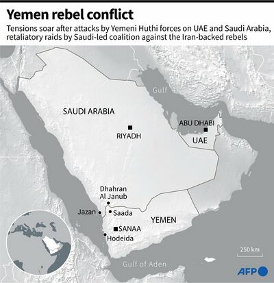 تصاعد التوترات بعد الهجمات التي تشنها القوات الحوثية اليمنية على الإمارات والسعودية، ومساعدات انتقامية من قبل التحالف بقيادة السعودية ضد المتمردين المدعومين من إيران.