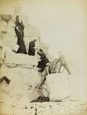 كتب أيضًا: "صعدت بسهولة بمساعدة العرب، وفي الأعلى كنا أكثر من ثلاثين. بمجرد أن وصلنا إلى قمة الهرم، أطلقنا من صيحات الفرحة، ولوحنا بمناديلنا وجلست على حجر من زمن خوفو وكتبنا بضع كلمات."