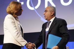 Tzipi Livni shaking hands with Salam Fayyad, 2008