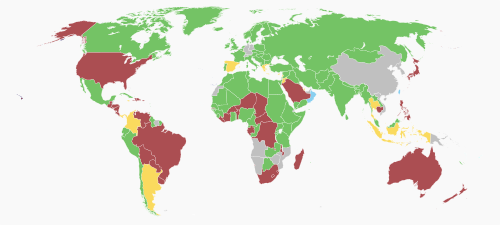 Green = In favour, Red = Against, Blue = Abstention, Yellow = Non-voting, Grey = Non-UN-members or dependencies.[68]