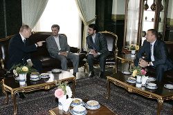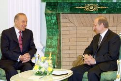 President Putin with President Heydar Aliyev of Azerbaijan during a ceremony for signing Russian-Azerbaijani documents.