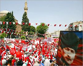 وبصفة عامة يمكن القول بأن نخب الدولة الحاكمة وقبل وصول حزب العدالة والتنمية إلى السلطة عام 2002 كانت لا تحبذ السياسة الديمقراطية لأنها تحمل بعض المطالب الشعبية ذات الصبغة الإسلامية والتي تتعارض مع القيم الجمهورية.