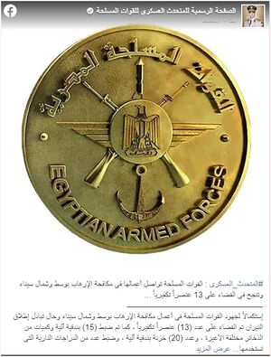 - ^ "الجيش المصري ينفذ عملية عسكرية ويقضي على 89 إرهابيا". سپوتنيك نيوز. 2021-08-01. Retrieved 2021-08-01.