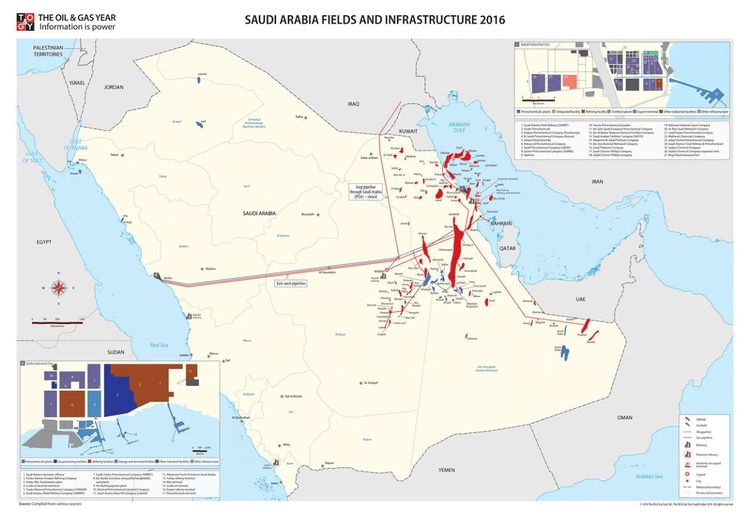 الاحتياطيات: تعتبر السعودية، أول منتج ومصدر للنفط في العالم وتمتلك ربع إحتياطي النفط في العالم. (حوالي 260 Gbl or 36 Gt).[بحاجة لمصدر]
