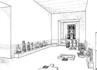 There is very little surviving evidence of what type of settlement Assur was in the early period.[13] Among the scant archaeological evidence recovered of early Assur are the remains of two temples built in mudbrick, both dedicated to the goddess Ishtar. Dubbed Ishtar H and G by modern researchers, the earlier one (H) has left almost no trace other than the lower stumps of its walls and can confidently be dated to the Early Dynastic Period as nothing has been found below it (indicating it was among the earliest structures at the site) and because some of the walls of the later temple (G) are directly above it. Ishtar G was composed of an oblong cella, an antechamber and a niche at its far end, perhaps designed to contain a cult statue. The structure of the less well-preserved Ishtar H was probably similar.[9] The architecture of the temples is suggestive of the ED II (ح. 2750/2700–2600 BC) and ED III (ح. 2600–2350 BC) periods.[46] Both temples appear to have been destroyed by being burnt down.[46]