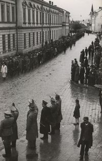 SS Galizien volunteers march on Kosciuszko Street in Sanok, 1943 May