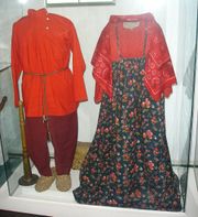 Male and female Russian national costumes.
