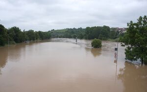 In June 2024, significant flooding struck Southern Germany, striking the most in Baden-Württemberg and Bavaria. Dozens of villages had to be evacuated across Baden-Württemberg and Bavaria due to the straining and failure of several dams and dykes caused by the persistent heavy rainfall.[41] Among the rivers whose water levels significantly rose include the Danube, the Isar, the Zusam, the Weilach, the Ilm, the Paar, the Schmutter,[42] the Roth, and the Leibi.[43] Many places had more rainfall in 24 hours than their whole monthly average, and in many areas, the water reached levels that were present only "once in a century" according to the Bavarian Flood Information Service.[44]