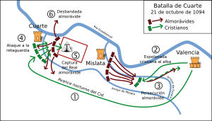 - ثانياً: القادر حاكم بلنسية، قام إل سيد في بداية الأمر بتوطيد سيطرته على المدينة تدريجياً وفي أكتوبر 1092 استفاد من انتفاضة الشعب ضد القادر فبدأ بحصاره لمدينة بلنسية واستمر الحصار لغاية مايو 1094 تاريخ سقوط المدينة بيد إل سيد.
