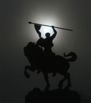 Silhouette of the San Francisco's Anna Hyatt Huntington copy of her El Cid statue.